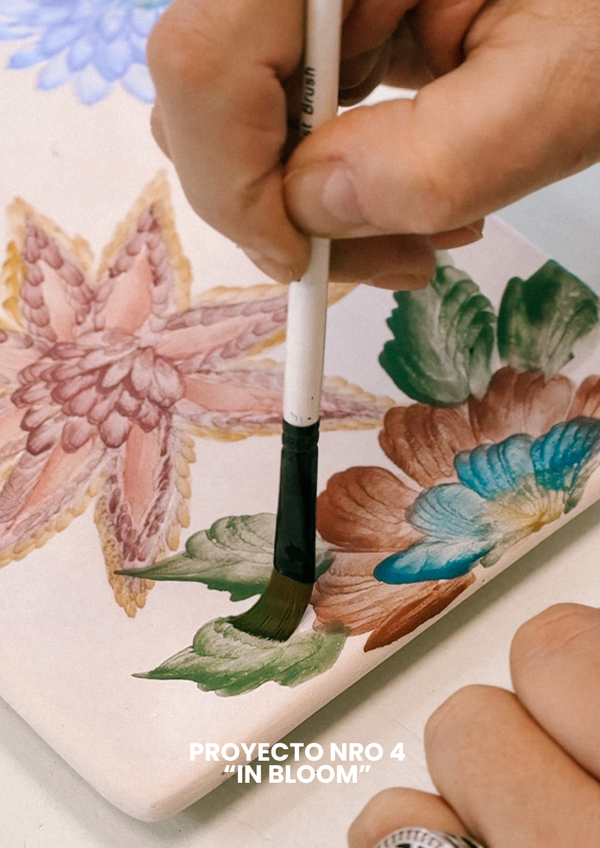En este proyecto se trabajará la técnica de pigmento bajo cubierta sobre una bandeja rectangular ondulada (o una pieza a elección) de bizcocho cerámico. El diseño a realizar será floral: aprenderemos a pintar flores y hojas al estilo Babushka, con pinceladas sueltas, a mano alzada, explorando formas, ritmo y composición.