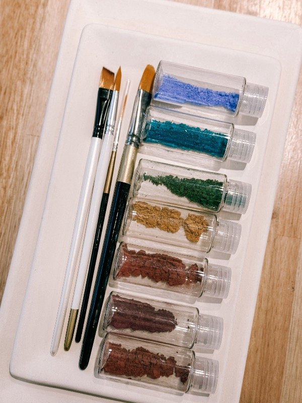 • Pigmentos: rosa, violeta, turquesa, verde, azul, verde petróleo, coral, ocre